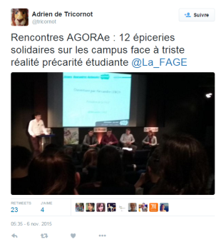 La FAGE remercie les nombreux intervenants et participants de cette deuxième édition des Rencontres Nationales AGORAé. Rendez-vous le 23 novembre pour l’ouverture de la 13ème AGORAé à Metz. (L’inauguration officielle aura lieu début 2016.)