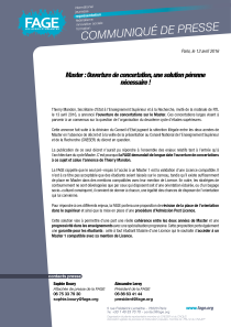 La publication de ce seul décret n’aurait pu répondre à l’ensemble des enjeux relatifs tant à l’entrée qu’à l’architecture du cycle Master. C’est pourquoi la FAGE demandait de longue date l’ouverture de concertations à ce sujet et salue l’annonce de Thierry Mandon.