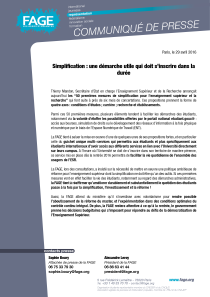 La FAGE, lors des consultations, a insisté sur la nécessité de mettre en oeuvre une politique ambitieuse de réforme pour l’enseignement supérieur dont la simplification ne doit être qu’un des outils. Si ces premières mesures vont en effet faciliter la vie des étudiants, notamment au regard des démarches administratives, la FAGE tient à réaffirmer qu’améliorer durablement et substantiellement le quotidien des étudiants passe à la fois par la simplification, l’investissement et la réforme !